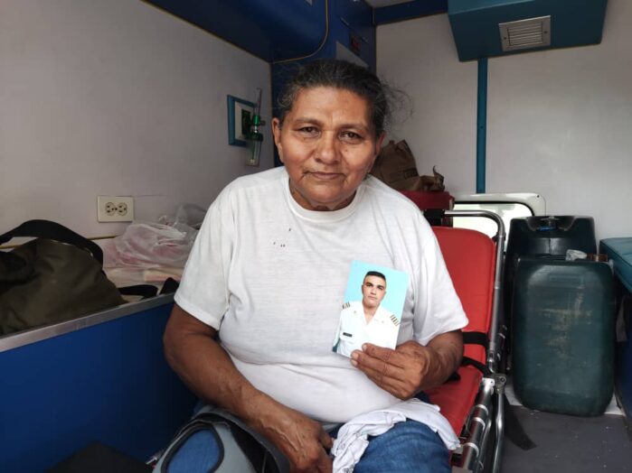 “Ya llevo tres operaciones y no me puedo operar más, pero yo por mis hijos me muevo hasta arrastrada. Me dejaron verlo y está bien dentro de lo que cabe, porque ningún preso está bien y mi hijo convulsiona, ojalá me lo estén atendiendo. De aquí me voy directo de regreso pa’llá de donde se trajeron a mi hijo cuando lo mandaron a la policía a buscar un carro y ese carro dizque estaba lleno de armamentos, y lo dejaron preso, y le dijeron que estaba preso por terrorista, y mi hijo no es culpable de nada”.